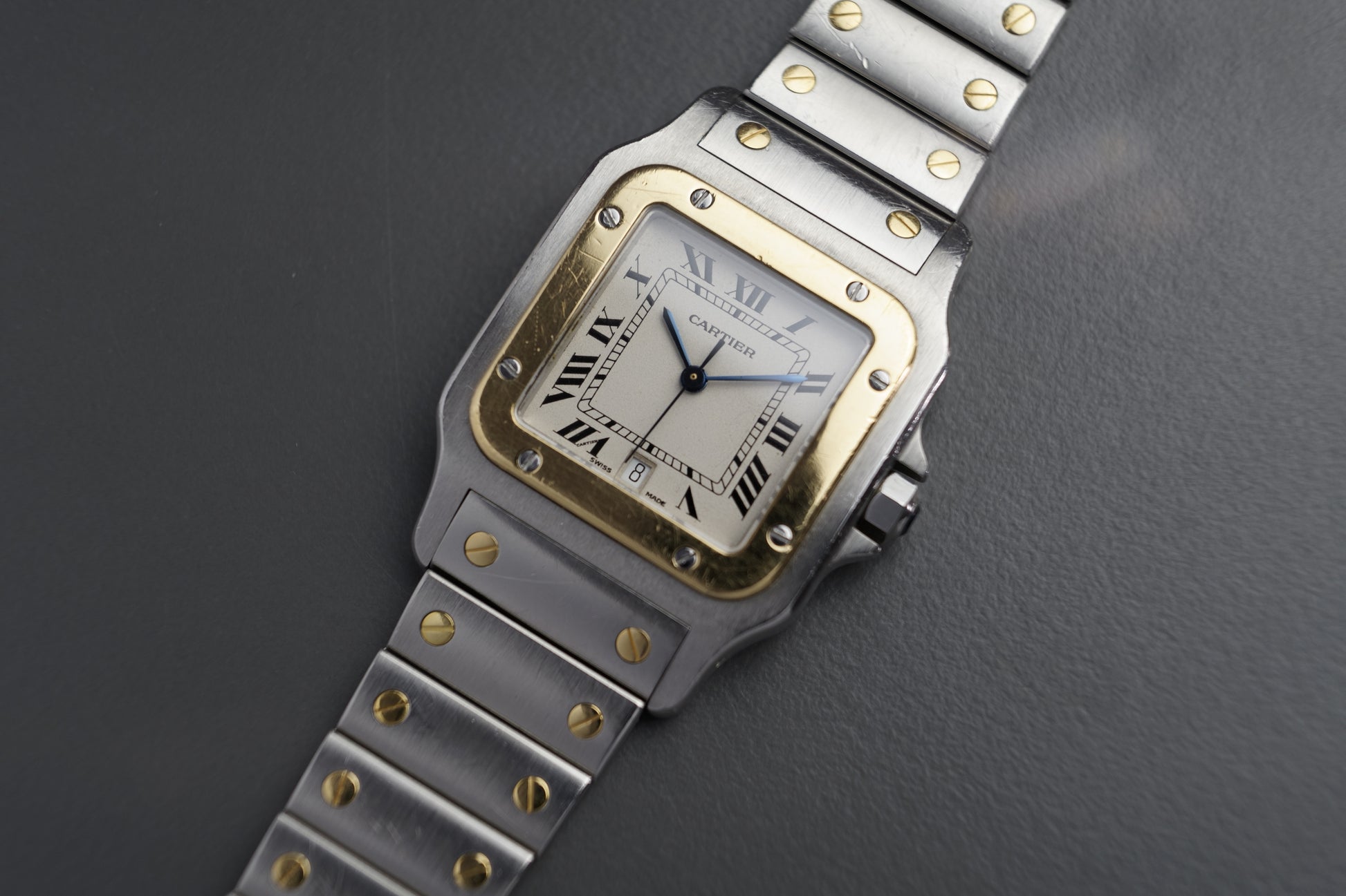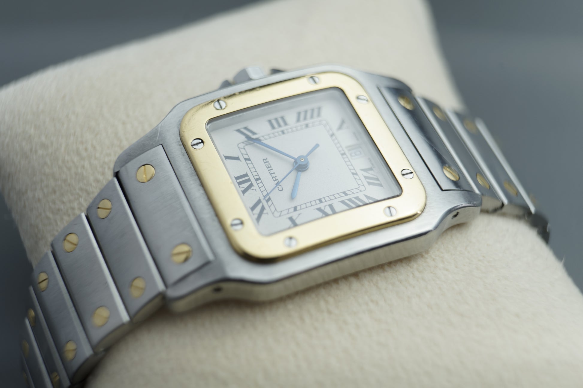 Hierbei handelt es sich um die elegante und zeitlose Cartier Santos Galbée.