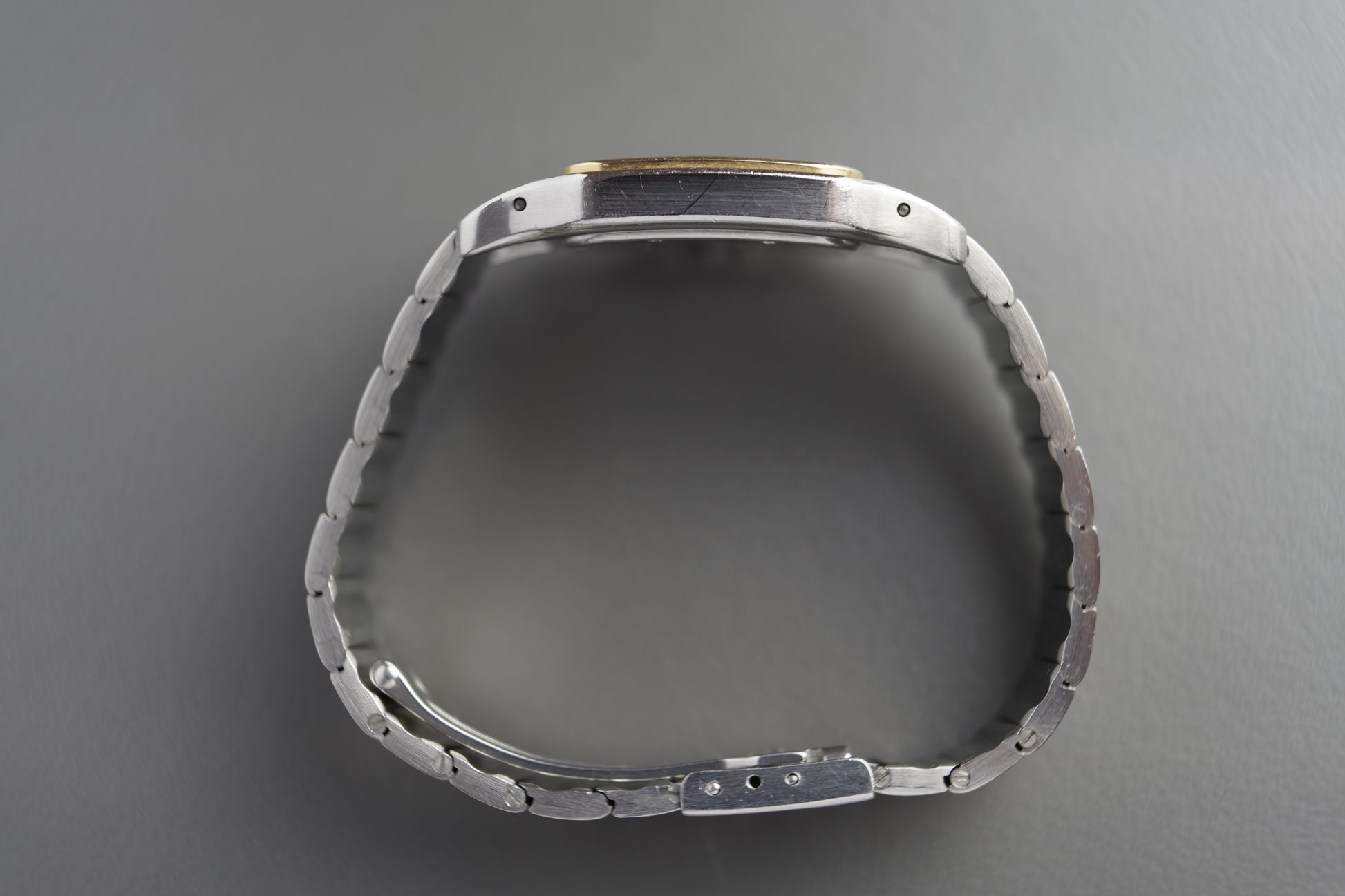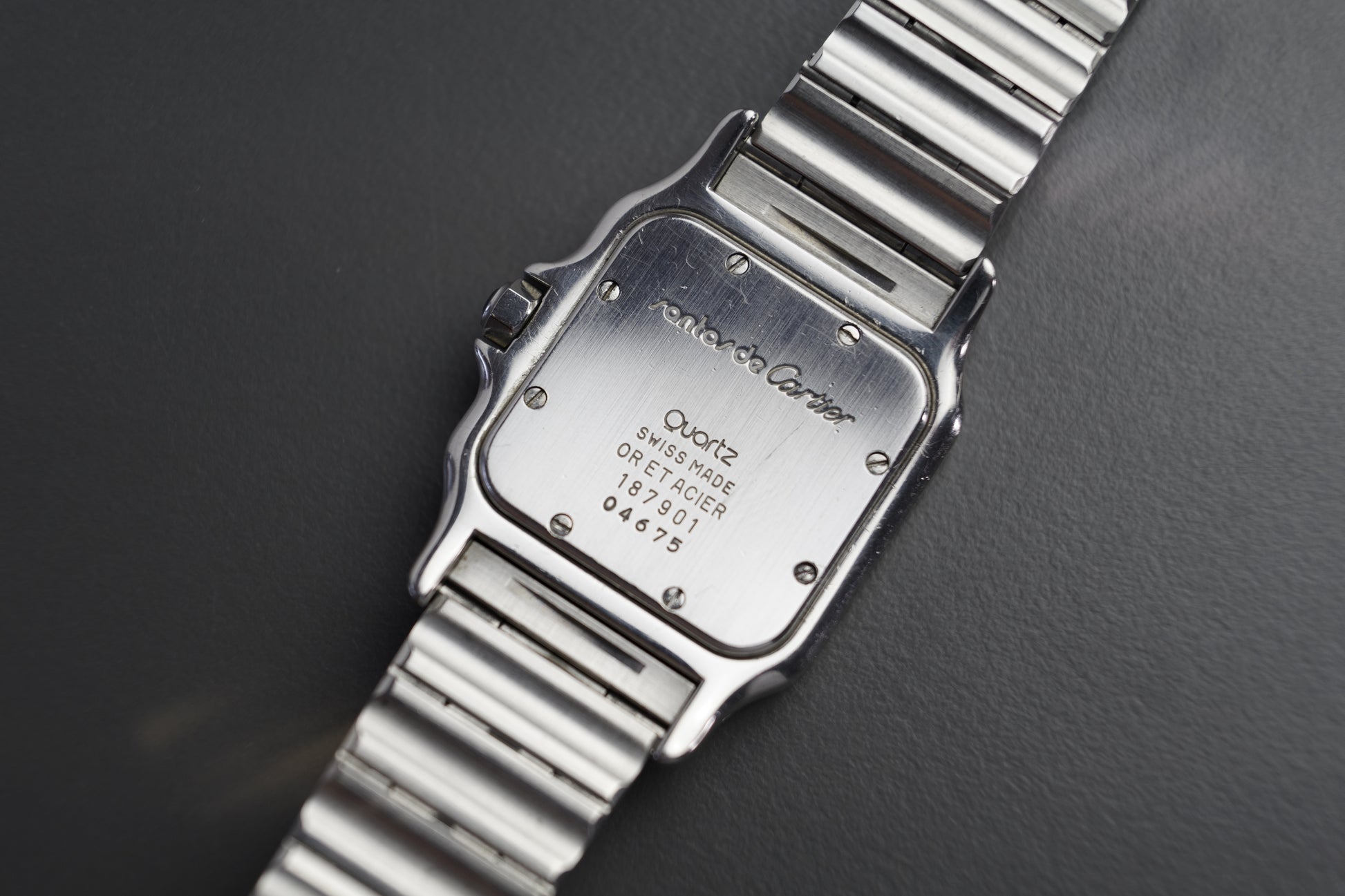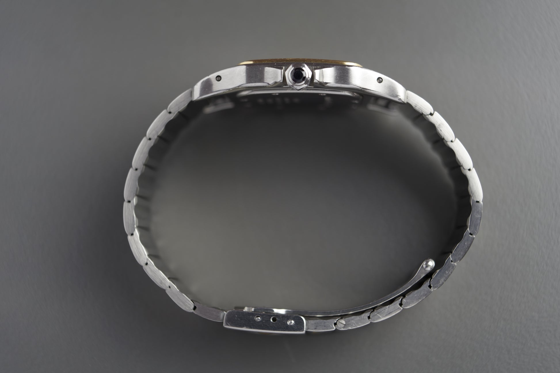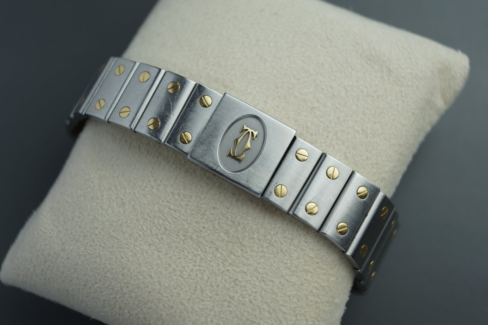 Sie kommt am Original Cartier Stahlgold-Band. Das abgebildete Cartier Etui ist ebenfalls Teil des Lieferumfangs.