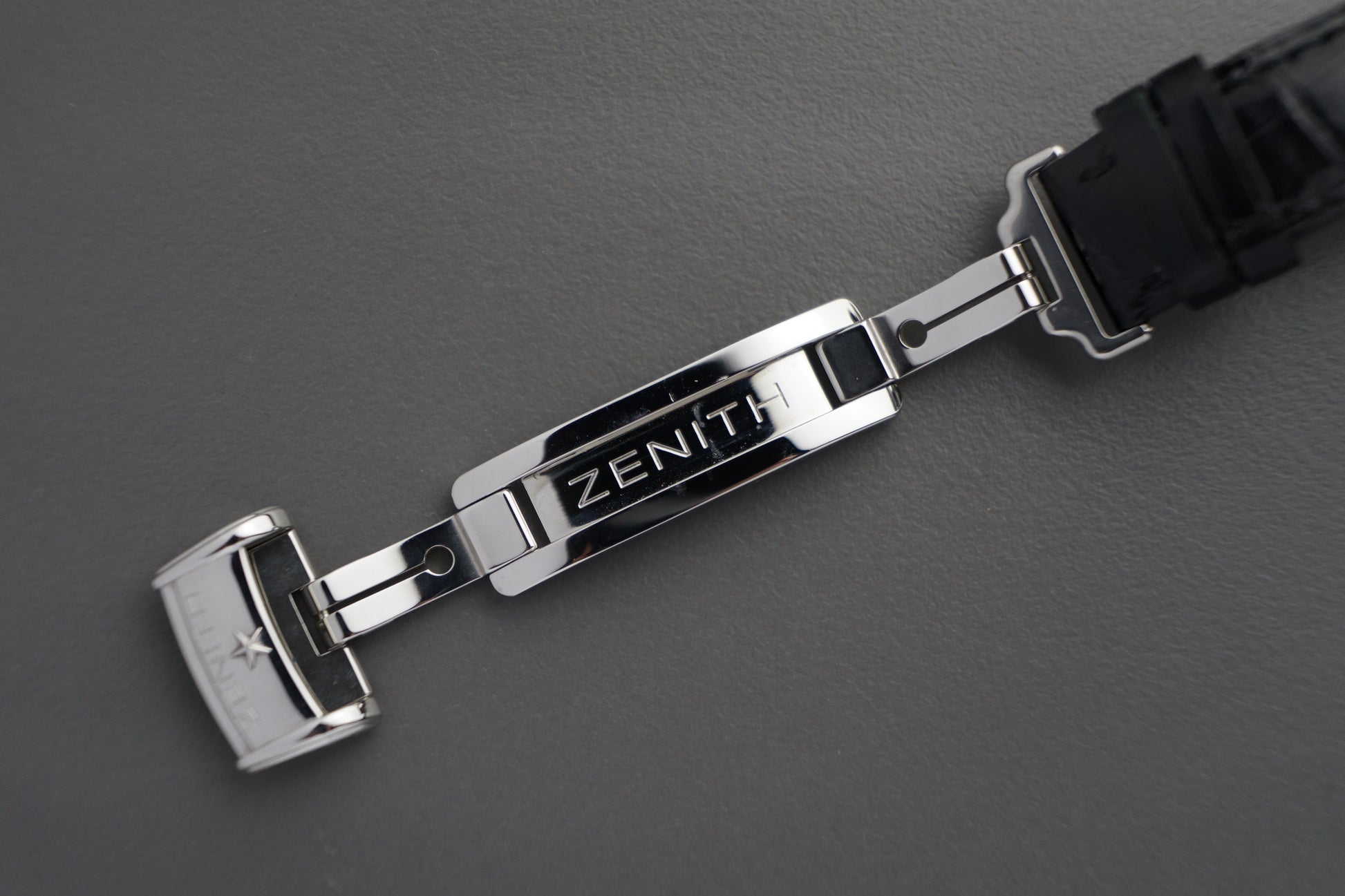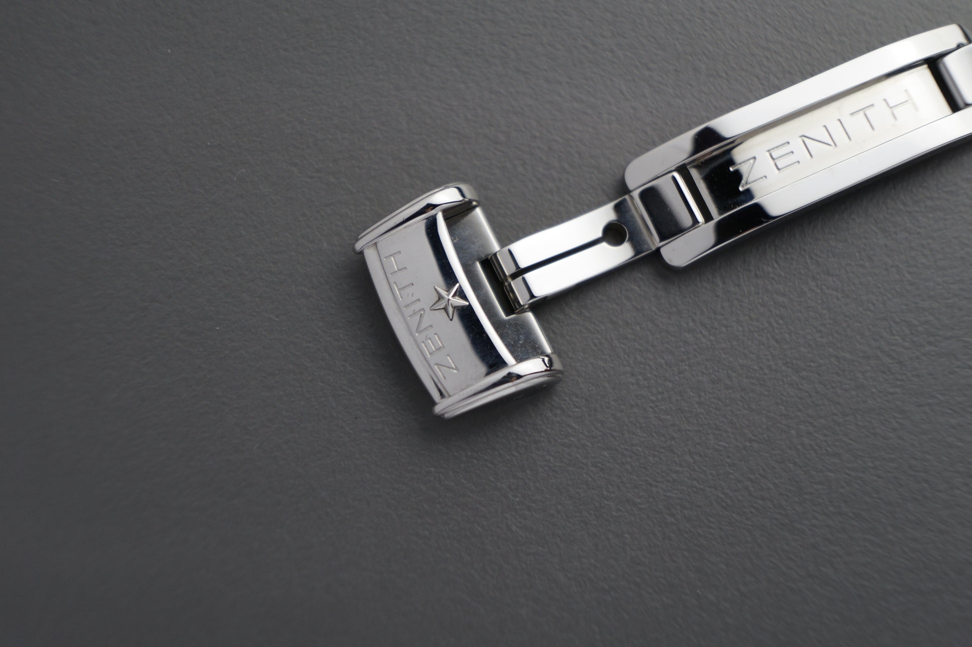 Hierbei handelt es sich um eine beeindruckende Zenith El Primero Chronomaster Ref. 03.0240.4021. Diese Uhr gehört zur renommierten Chronomaster-Kollektion von Zenith und vereint technische Raffinesse mit eleganter Präsenz am Handgelenk. Sie wird vom hauseigenen Automatik-Kaliber 4021 angetrieben.