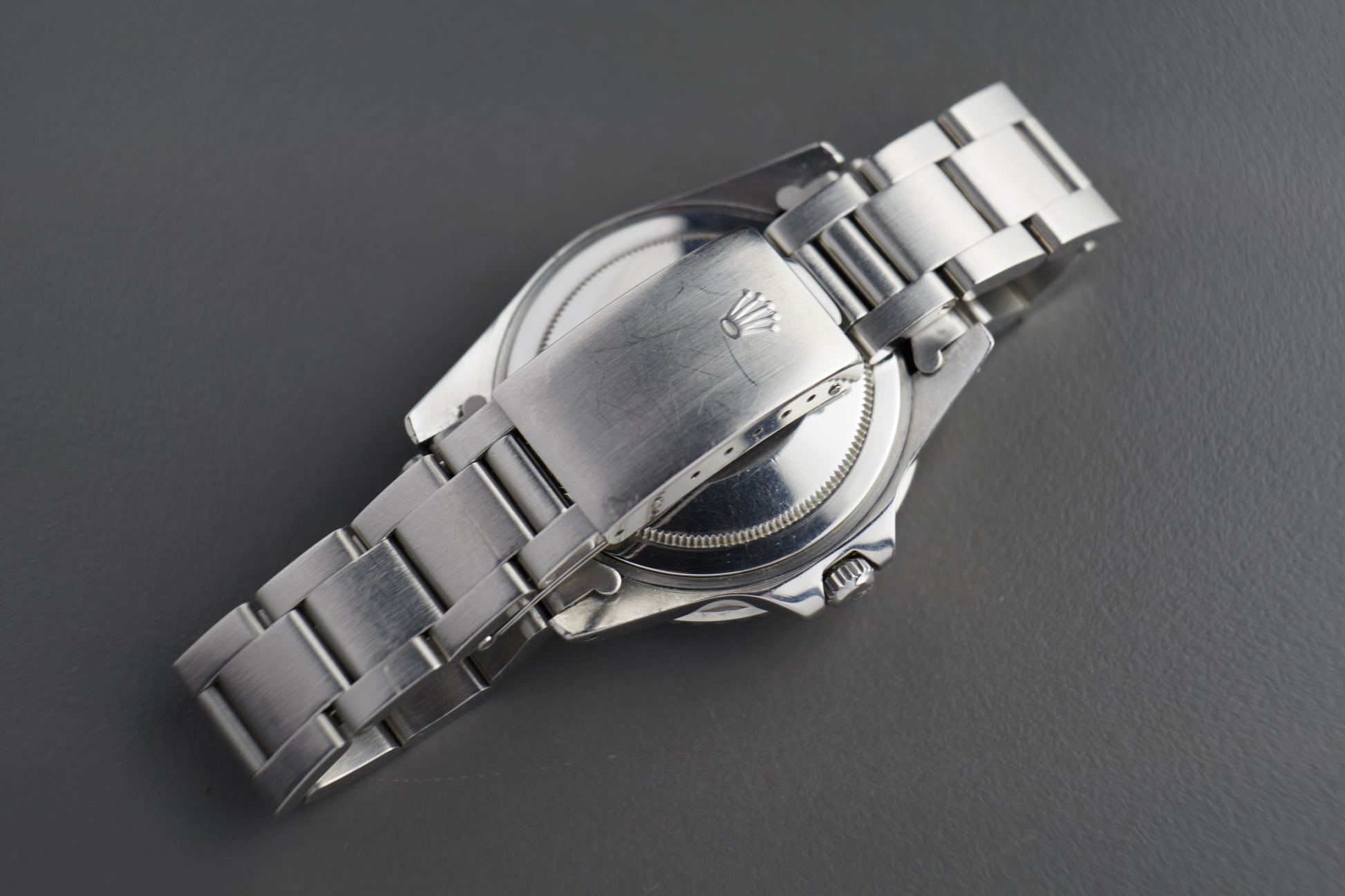 Hierbei handelt es sich um eine wunderschöne Rolex GMT-Master mit der Referenznummer 1675 aus dem Jahr 1972 (30xxxxx Serie) - ein Klassiker in der Uhrenwelt. Sie ist im Kontrast zu den modernen Rolex Uhren keine Uhr, die man im Alltag zu Hauf sieht. Besonders nennenswert ist hier die gleichmäßig gealterte Leuchtmasse auf Zeigern und Indizes. So eine Patina sieht man sehr selten.