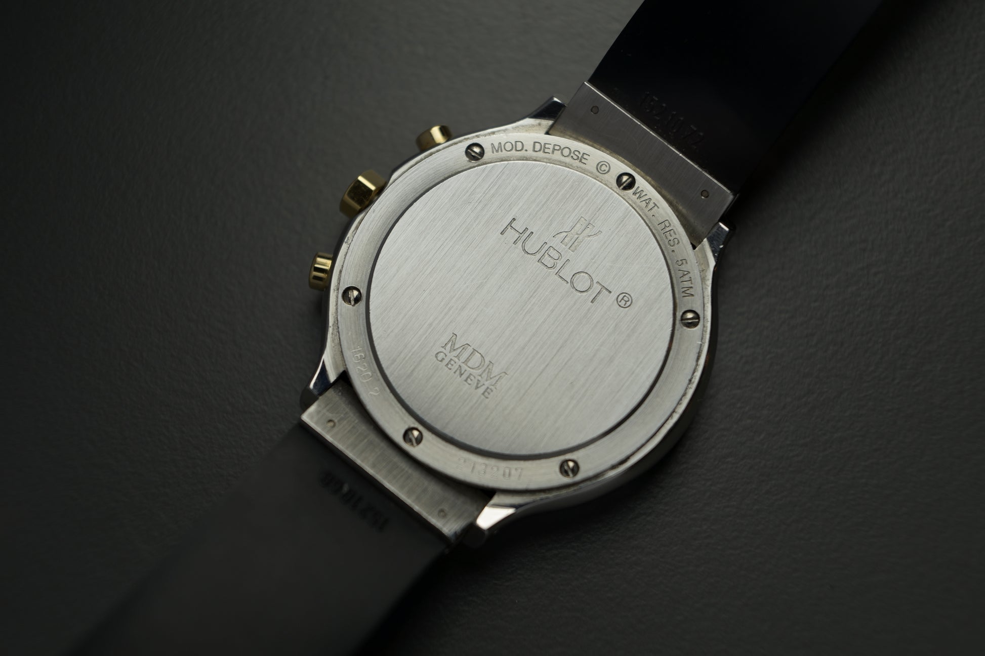 Hierbei handelt es sich um eine elegante Hublot MDM Classic mit der Referenz 1620.2, ein stilvoller Zeitmesser, der die klassischen Designelemente von Hublot mit moderner Funktionalität kombiniert. Die MDM-Linie ist bekannt für ihre schlichte Eleganz und den markanten Mix aus Materialien, der den einzigartigen Charakter von Hublot ausmacht.
