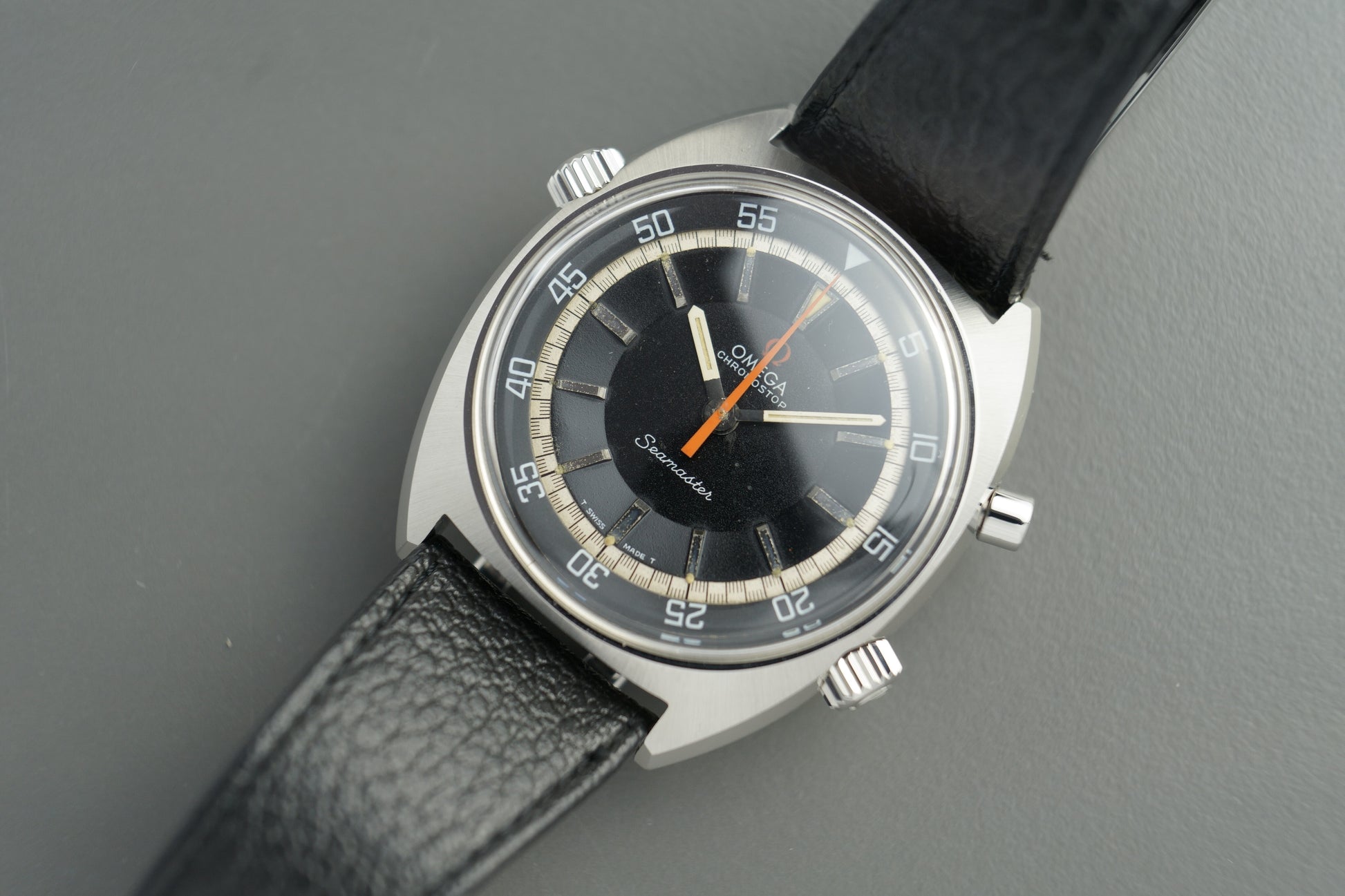 Hierbei handelt es sich um eine wunderschöne OMEGA Seamaster Chronostop 145.008 aus dem Jahr 1967.