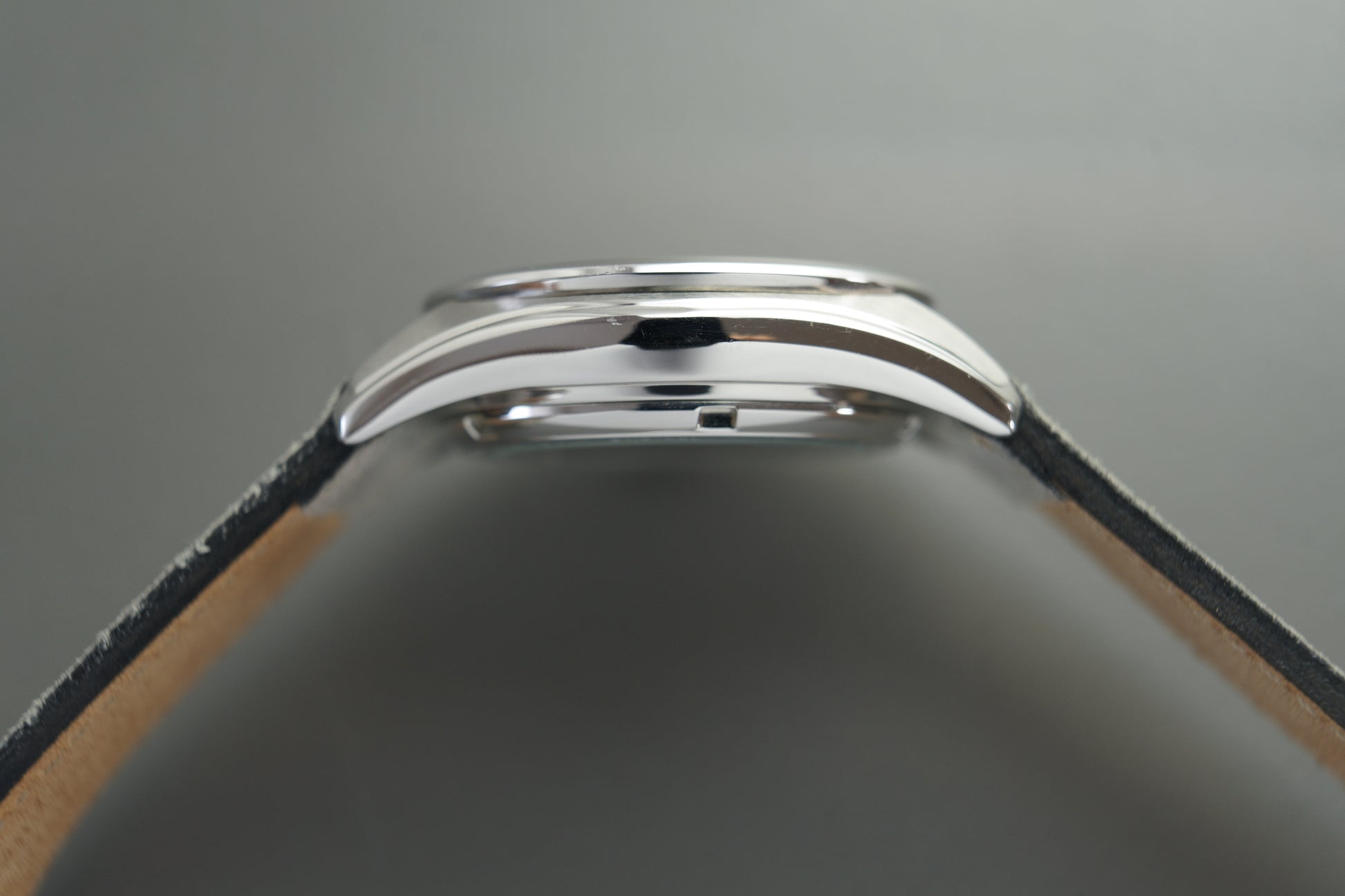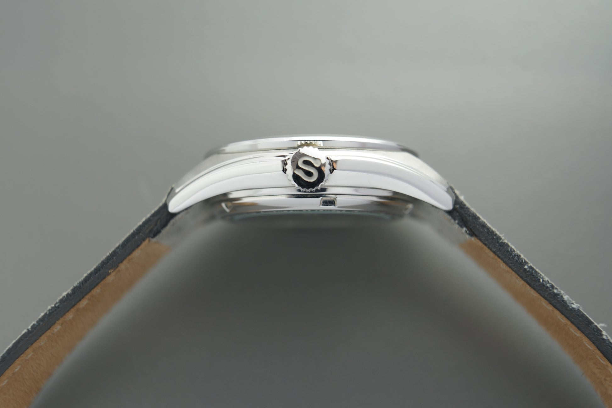Die Uhr kommt an einem Lederband.