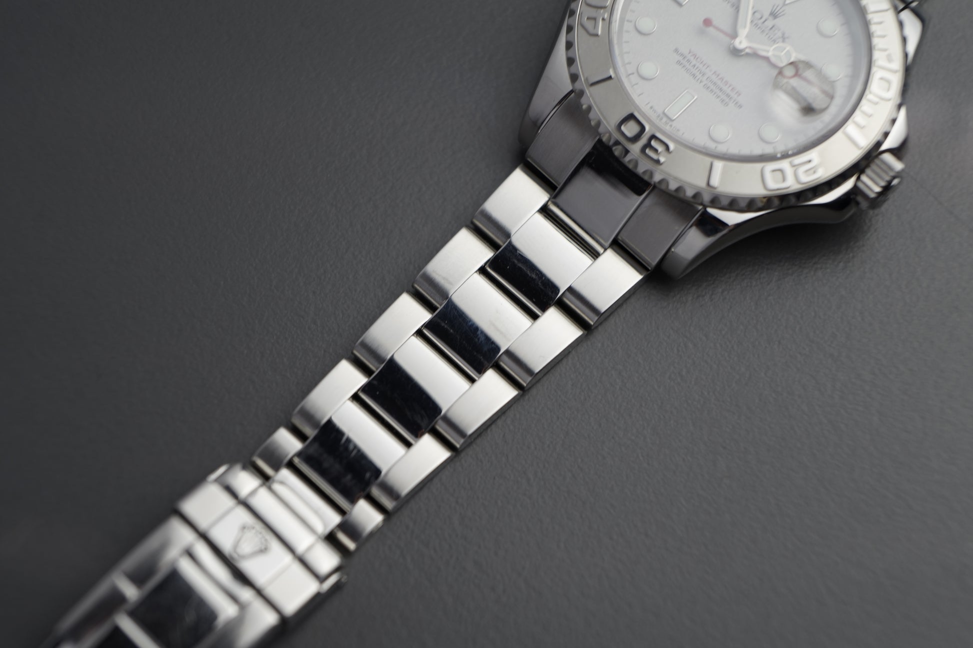 Hierbei handelt es sich um eine wunderschöne Rolex Yachtmaster in Edelstahl mit Platin Lünette.